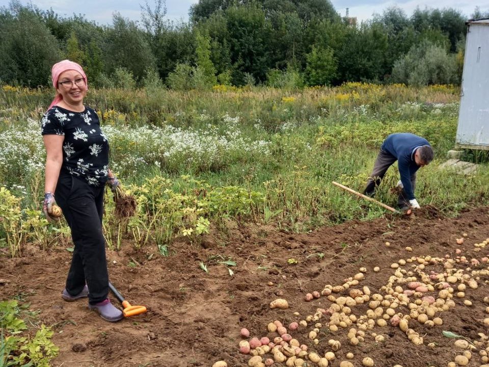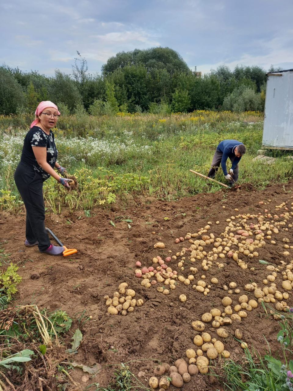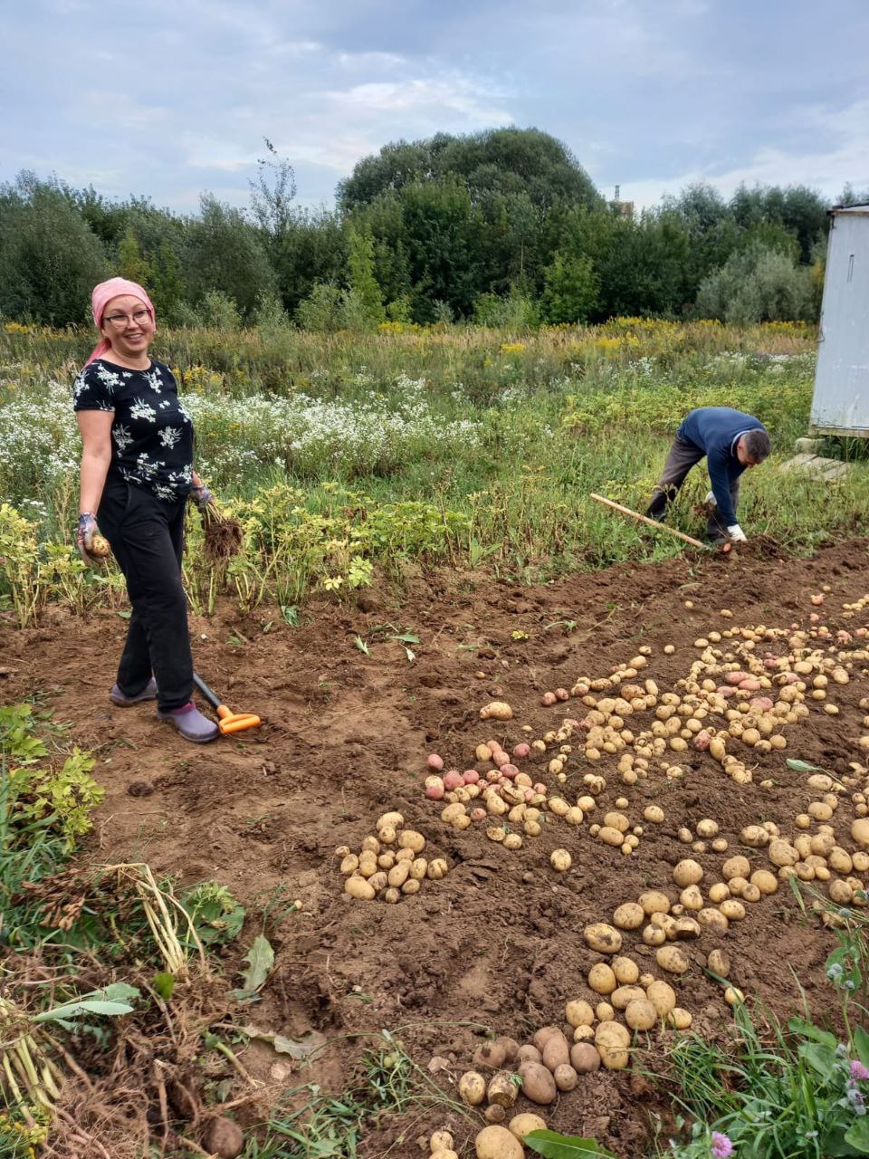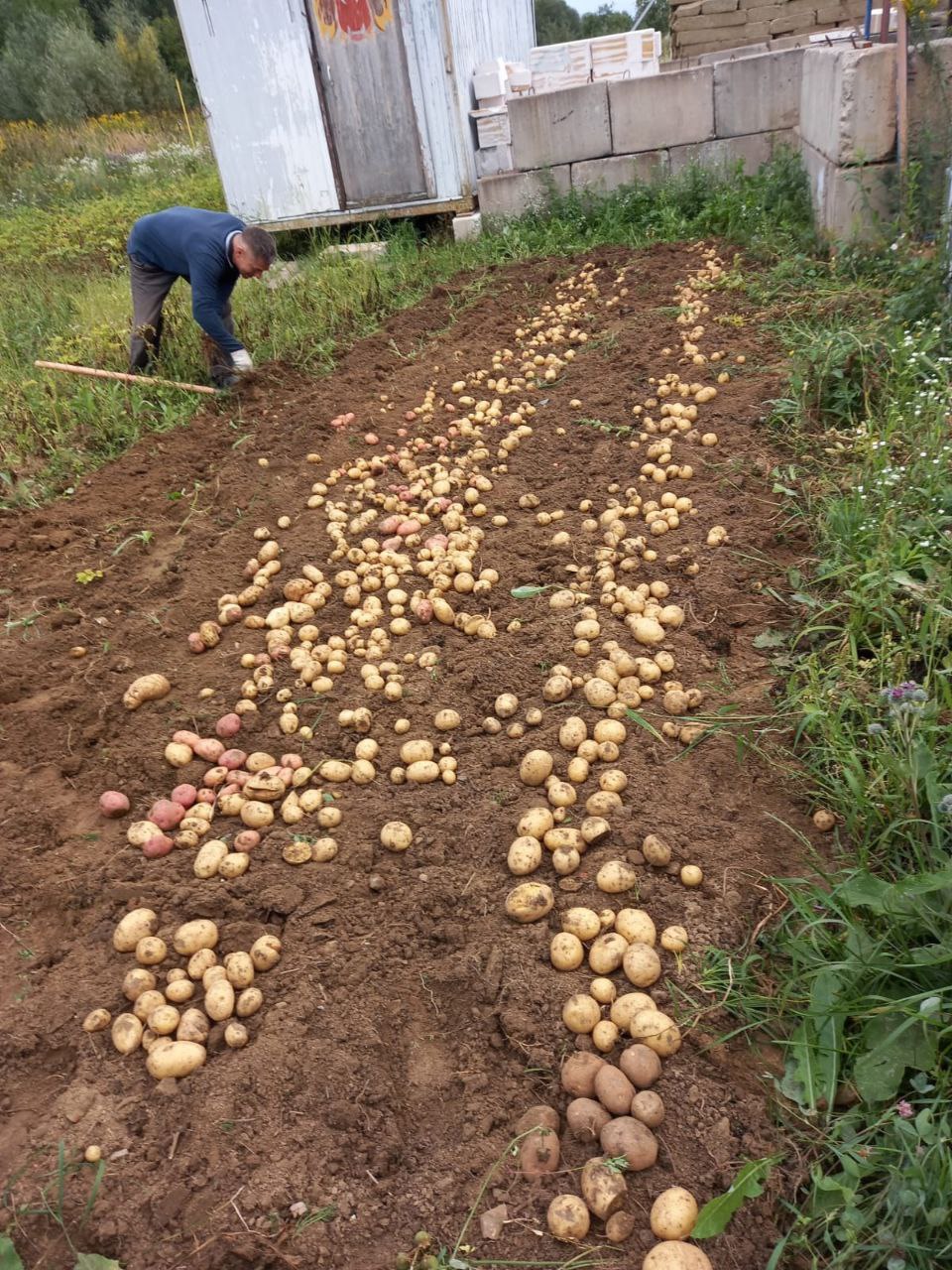 на территории храма, можно сказать в глине, по вашим молитвам, мои дорогие, собрали урожай картошки! А так же у нас хорошо уродились капуста, лук, чеснок, свекла, огурцы, помидоры, кабачки и много еще чего! Хотели еще вырастить арбузы, но в последний момент что-то передумали. Не удивился бы, если еще посадили бананы и ананасы, и они бы выросли хорошим урожаем! Молитвами нашего прихода и золотыми руками наших прихожан нет ничего невозможного!