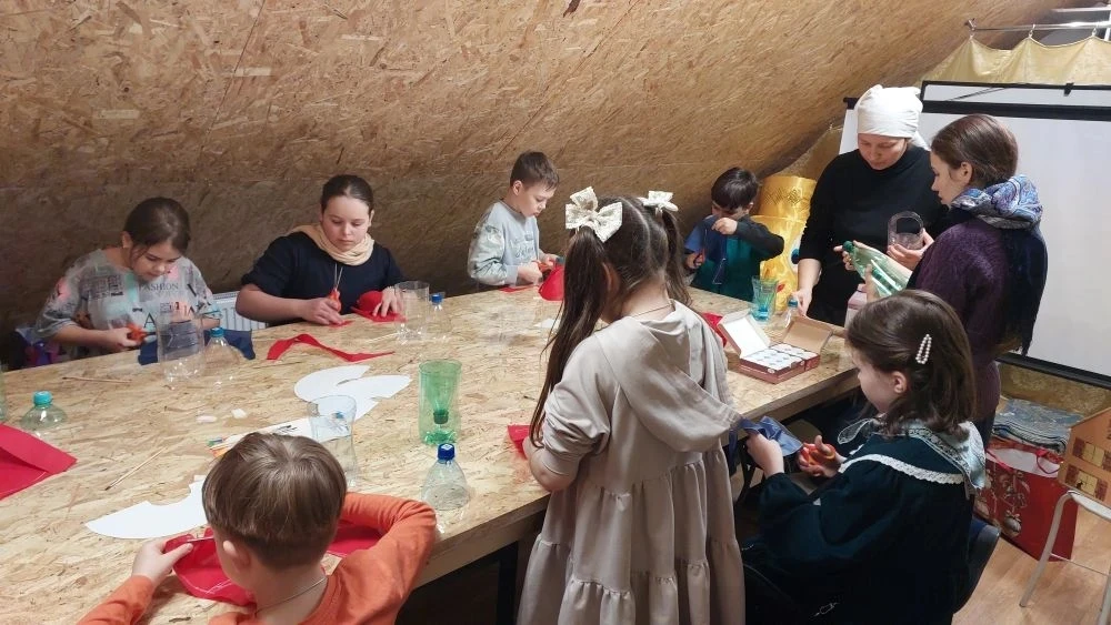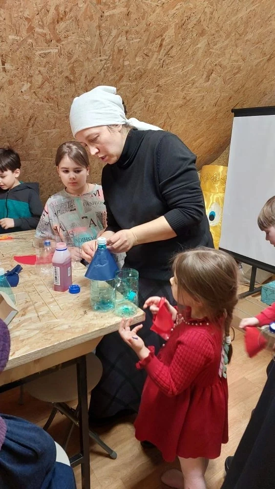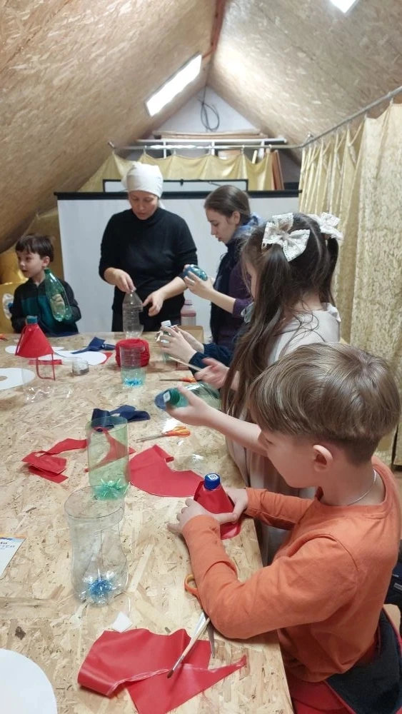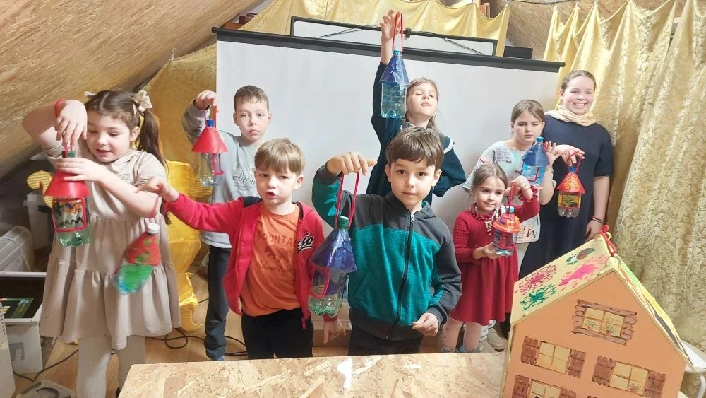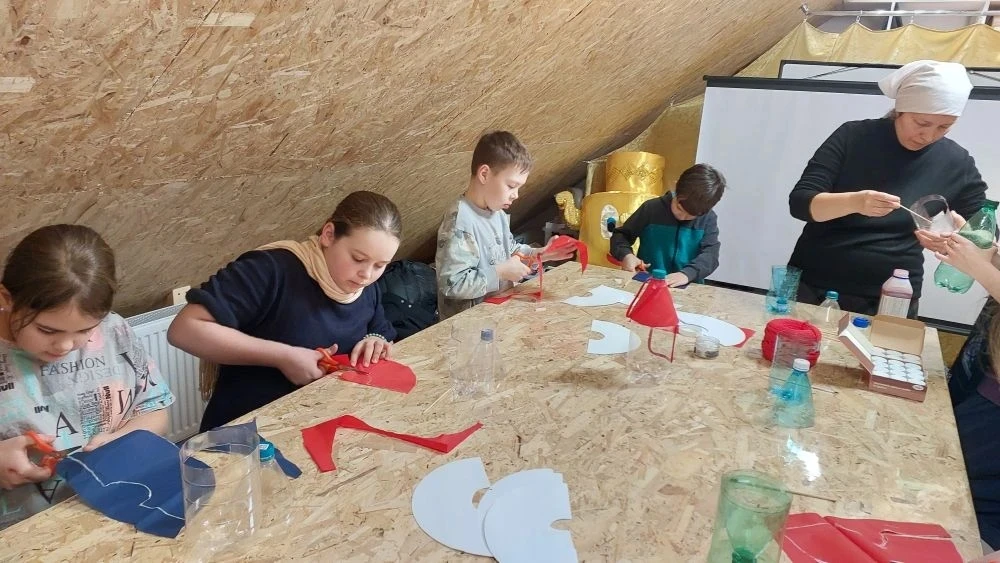 Так же поговорили о том, что вера без дел мертва. Поэтому мы с ребятами решили на уроке творчества сделать кормушки для птичек. Одну большую кормушку мы повесили на территории храма. На ней каждый из ребят оставил свой рисунок. А маленькие кормушки ребята забрали с собой, чтобы повесить рядом с домом.