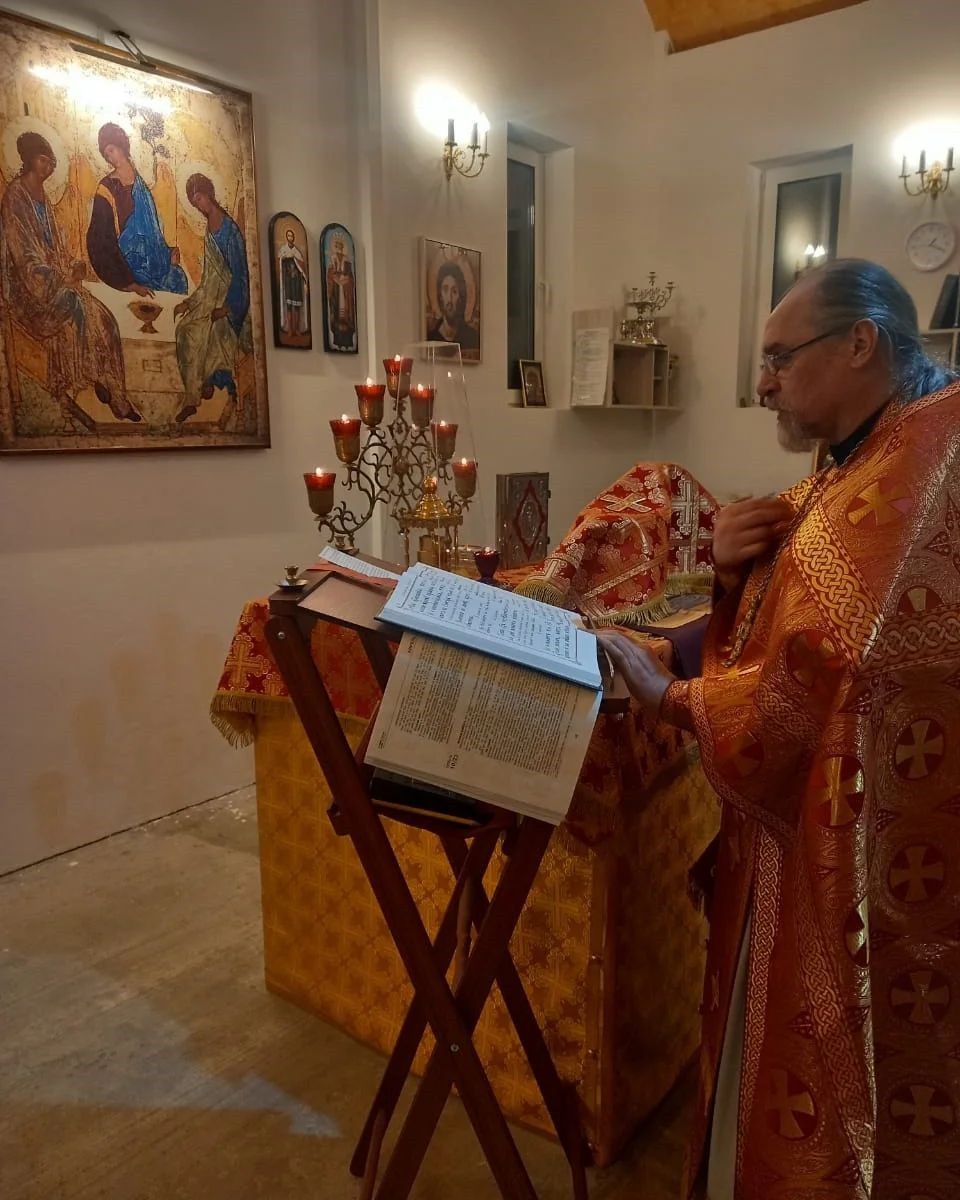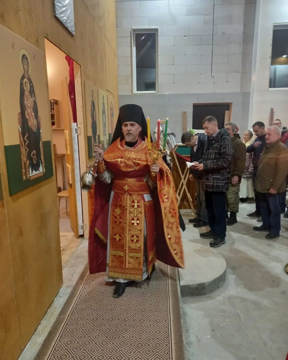 Пасха красная, / Пасха, Господня Пасха! / Пасха всечестная / нам возсия. Пасха, / радостию друг друга обымем. / О Пасха! / Избавление скорби, / ибо из гроба днесь, / яко от чертога / возсияв Христос, / жены радости исполни, глаголя: /проповедите апостолом.