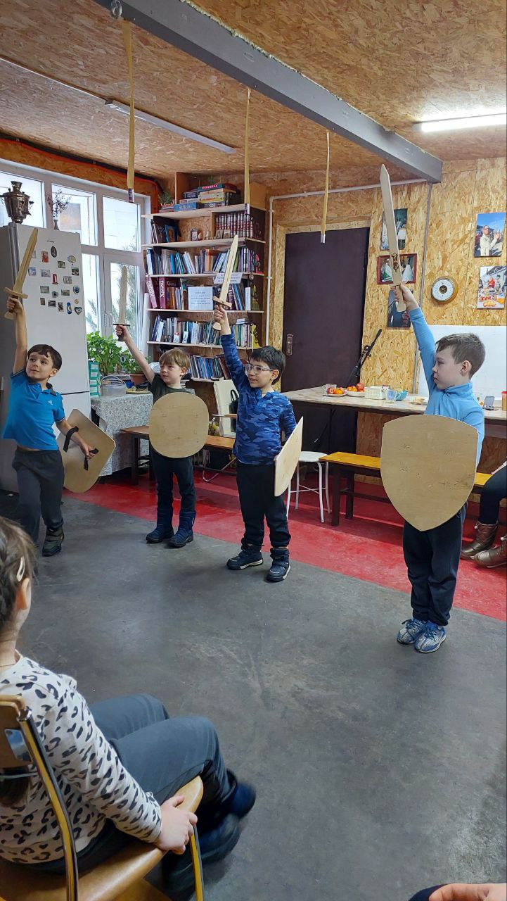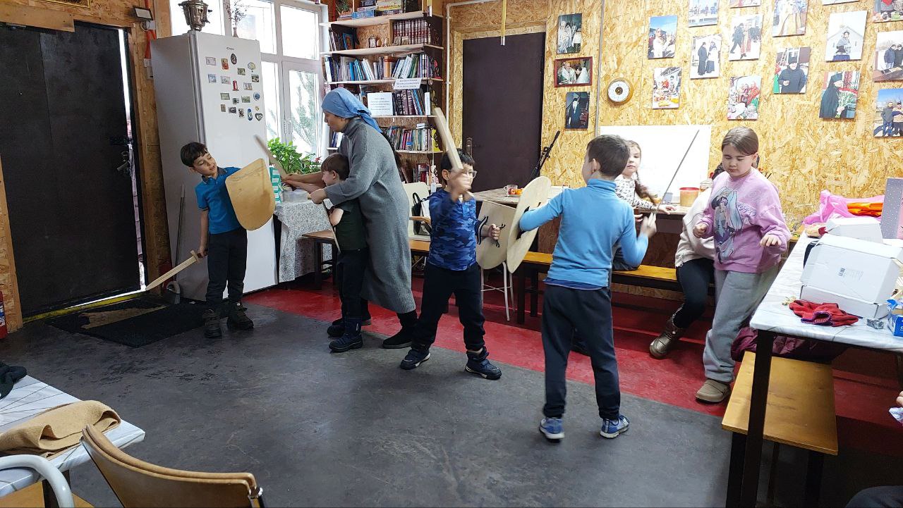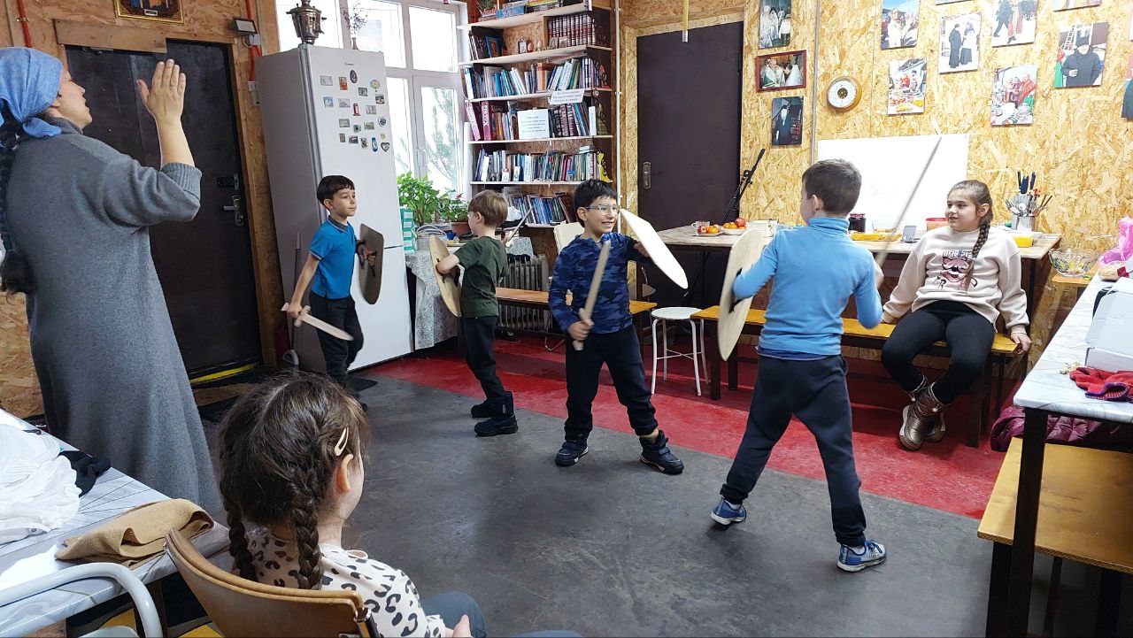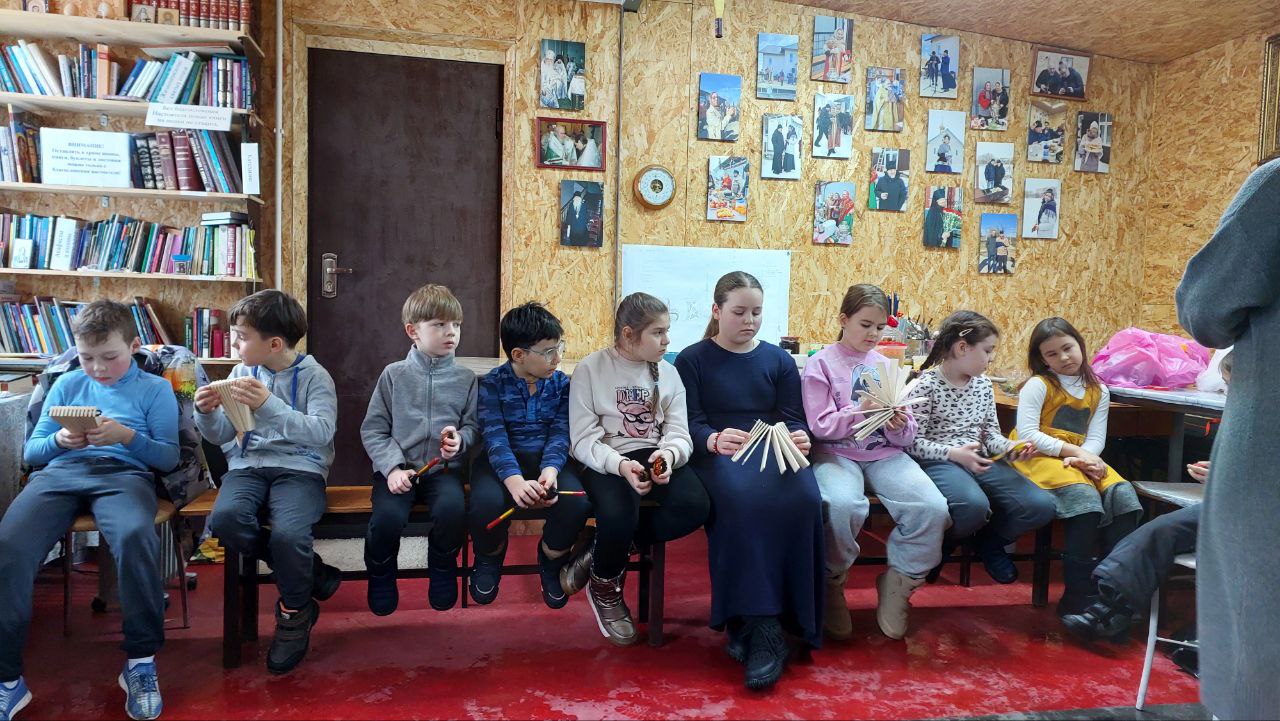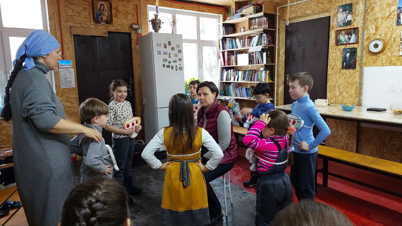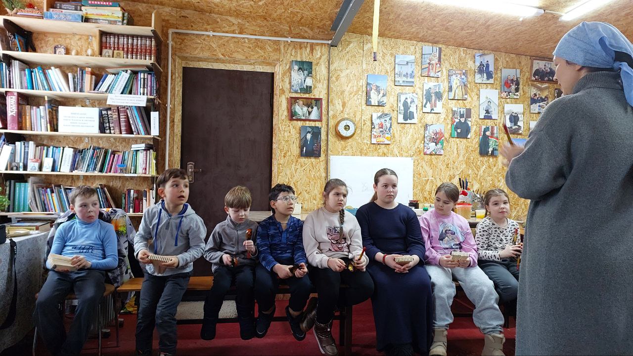 В ожидании Масленицы ребята из воскресной школы готовятся к выступлению. Готовятся костюмы и концертный реквизит. Мальчики репетируют богатырский номер, девочки репетируют игру на русских народных инструментах. И конечно будут песни!