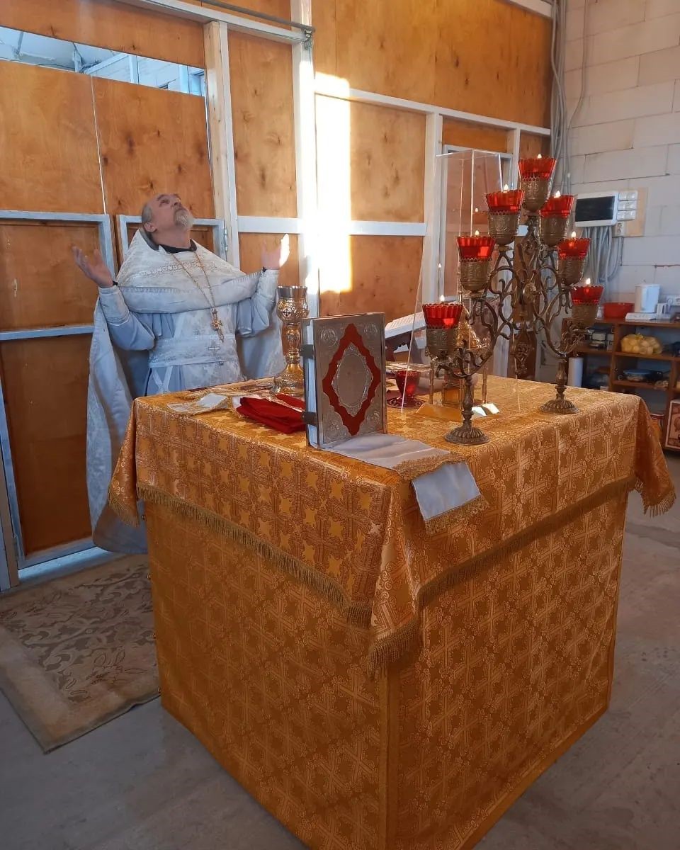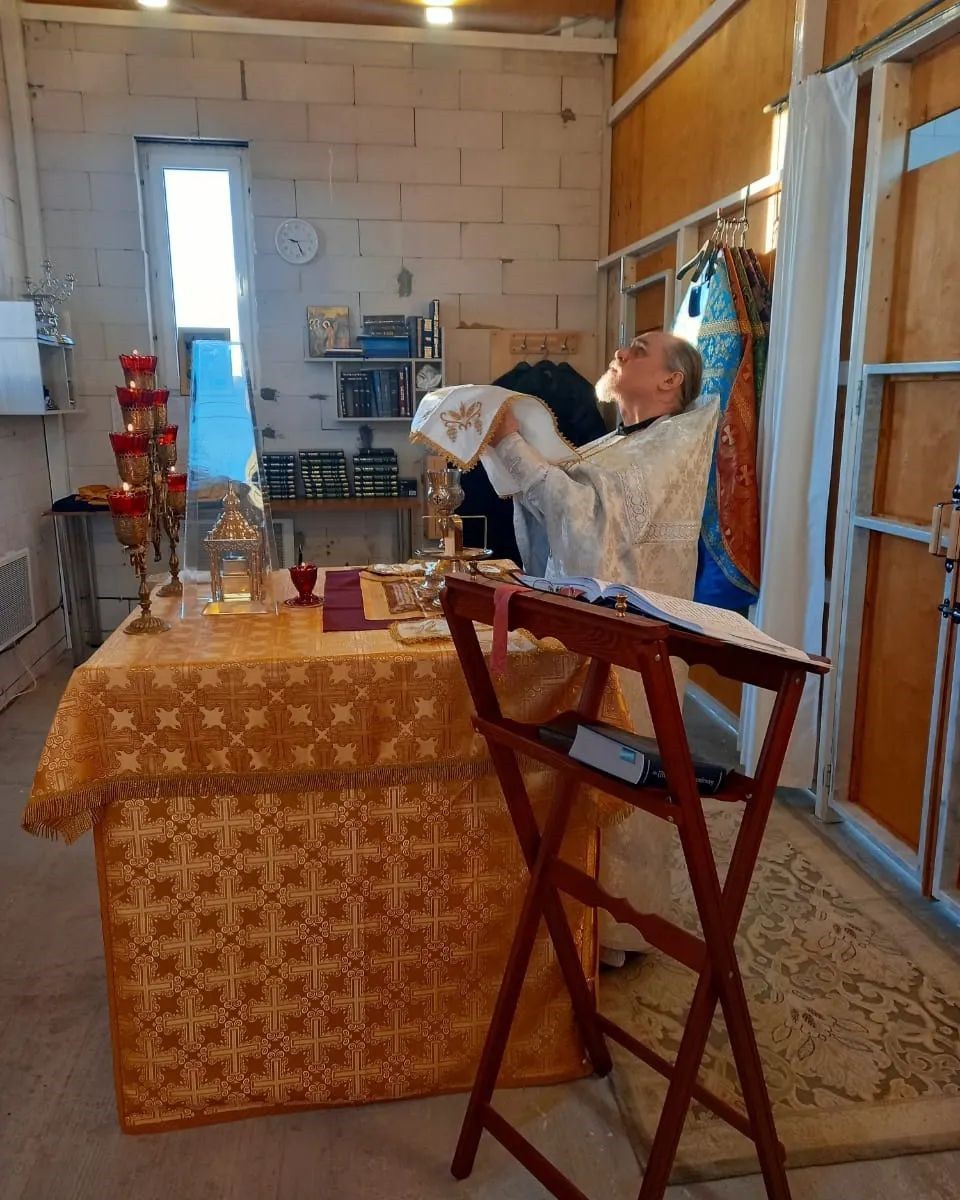 На фото праздничная служба в новом храме прп. Александра Свирского.