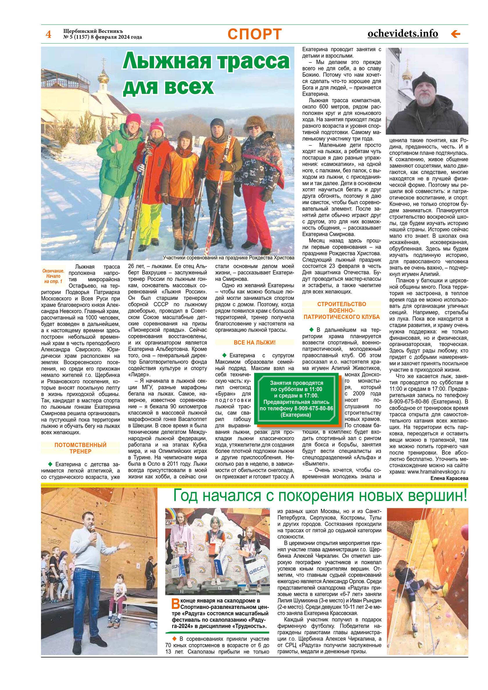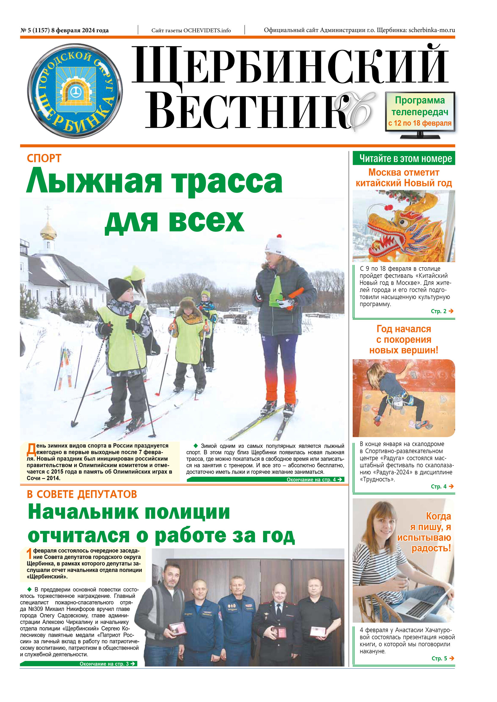 Статья "Лыжная трасса для всех" газета Щербинский вестник
