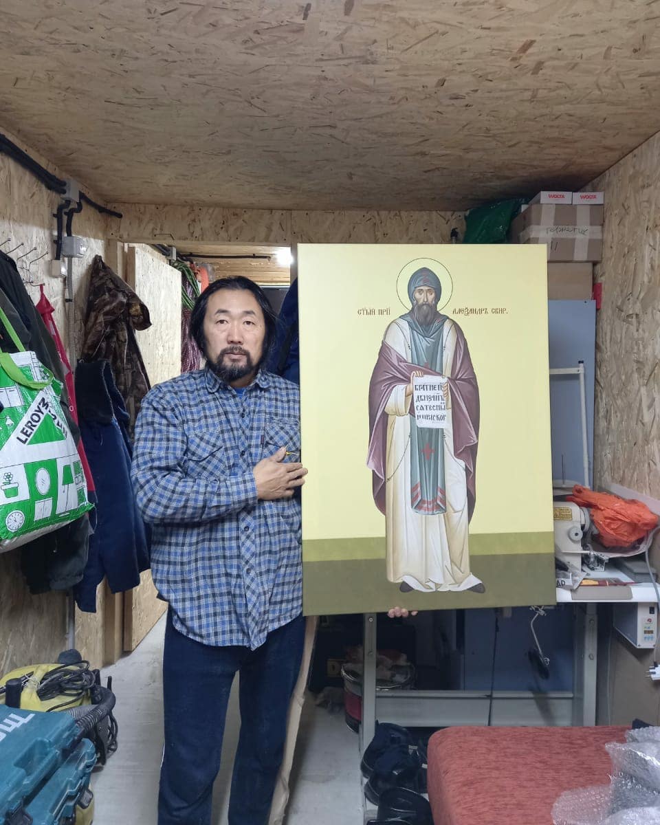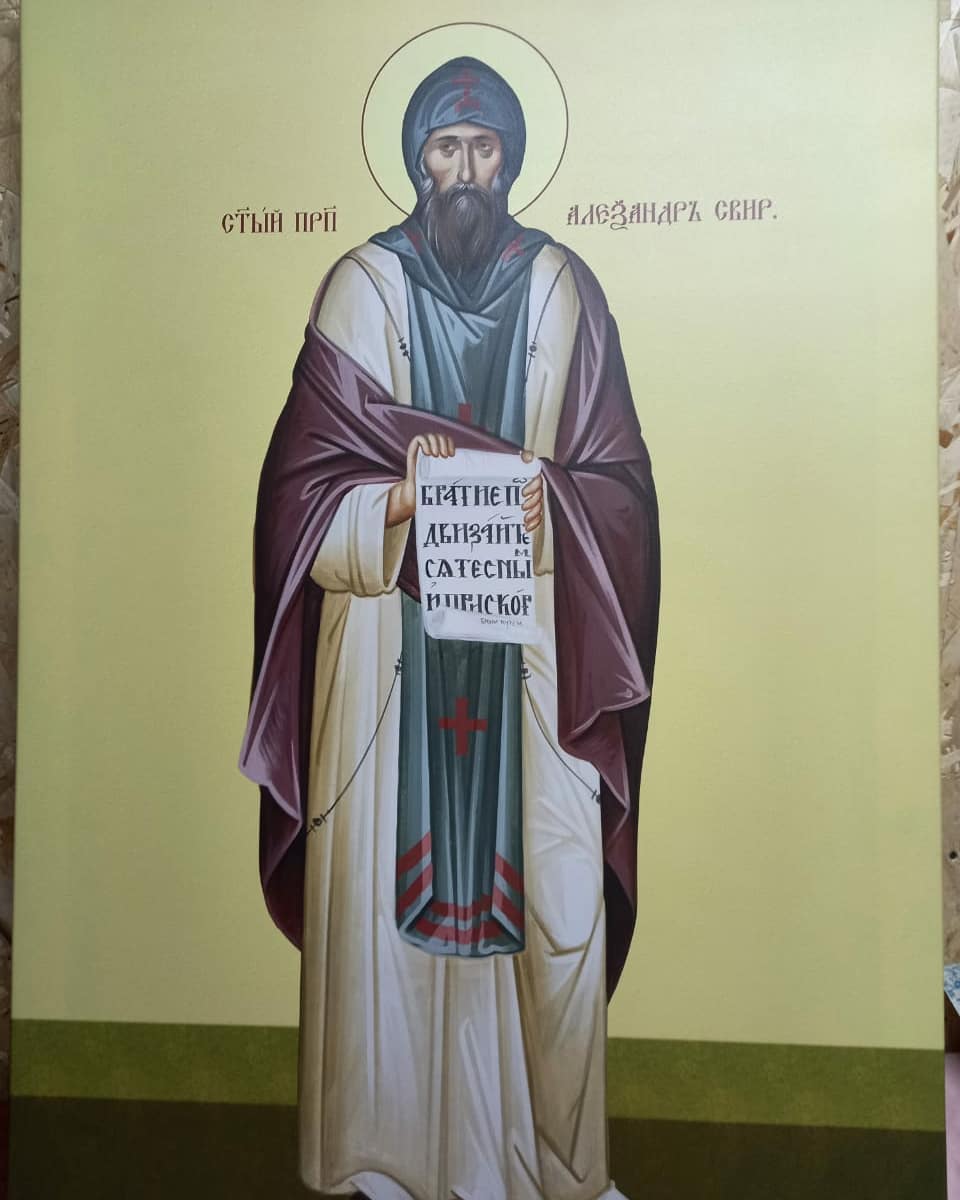 Еще одна хорошая радость. Поступила, как образец, первая икона в будущий иконостас. Дай Бог Руслану и Аните, и всему их семейству всех благ и доброго здоровья! На фото икона прп. Александра Свирского на фоне главного рабочего стройки Петра. Лучших строителей в жизни я еще не встречал. Когда-то мы с ним начинали восстанавливать Донской монастырь. Не уступает ему в профессионализме и второй рабочий Александр.