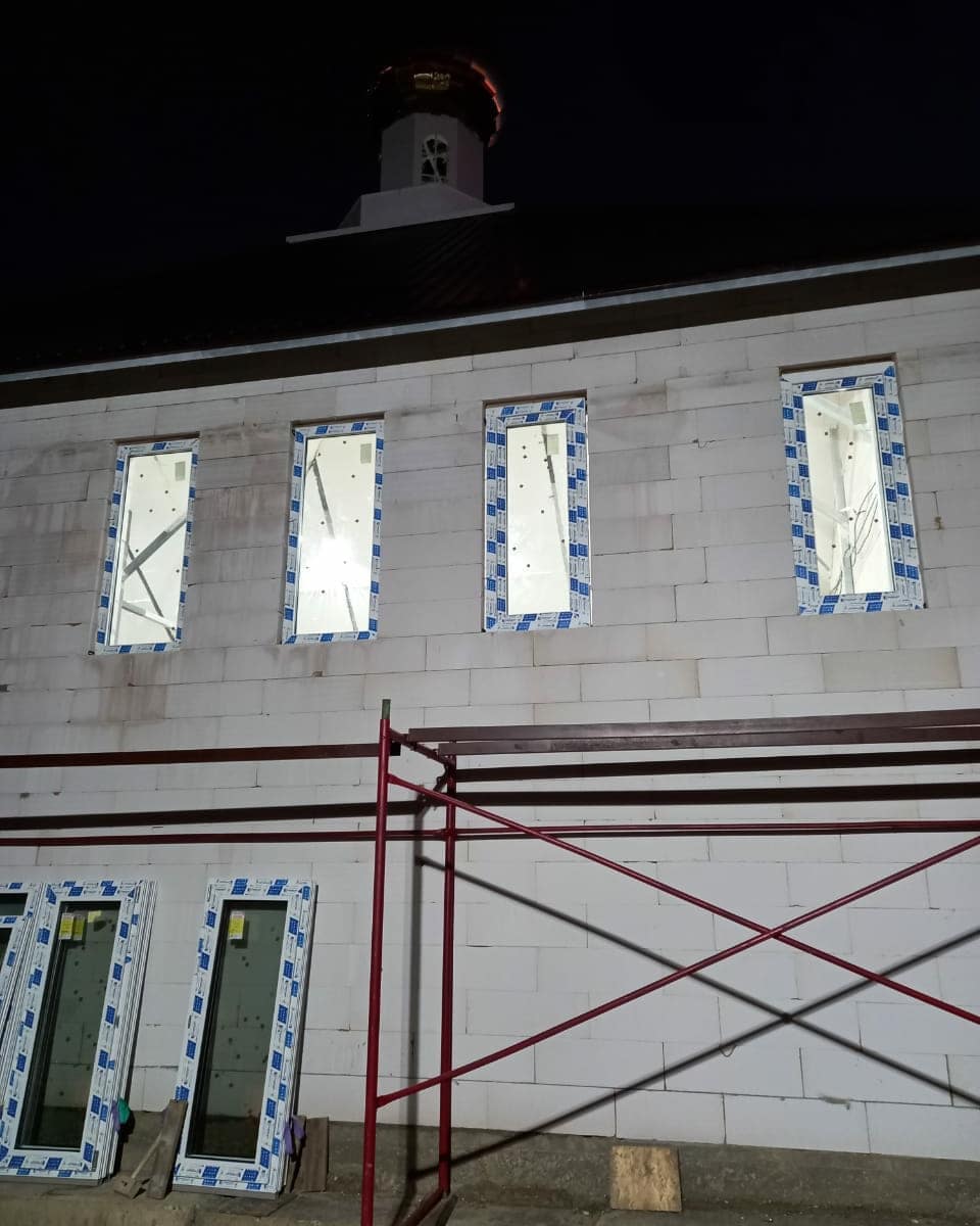 Вчера привезли 14 окон и уже почти все вставили. Хоть немного уже станет теплее в храме. Напоминаю, что строительство ведется в поле на самом ветродуве. Рабочие одевают кучу одежды чтобы не продуло на сквозняке. Напоминаю о предыдущей просьбе. Очень нужно около 20 настенных, электрических обогревателей, от которых первое время, пока не заработают тёплые полы, будет отапливаться храм.