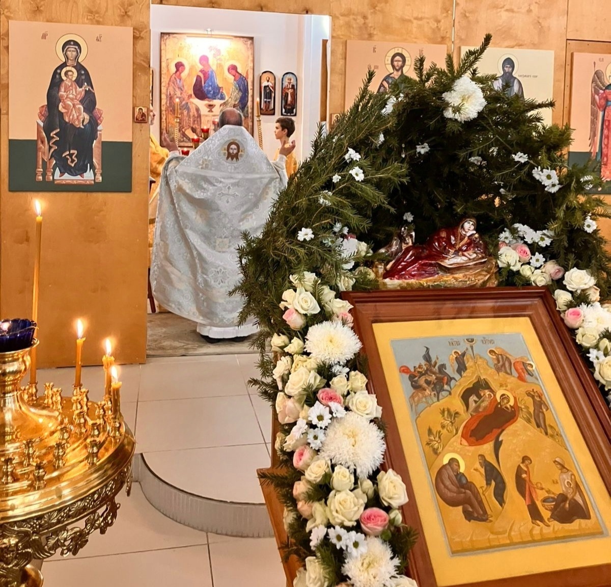Рождество Твое, Христе Боже наш, возсия мирови свет разума, в нем бо звездам служащии звездою учахуся. Тебе кланятися, Солнцу правды, и Тебе ведети с высоты Востока. Господи, слава Тебе!