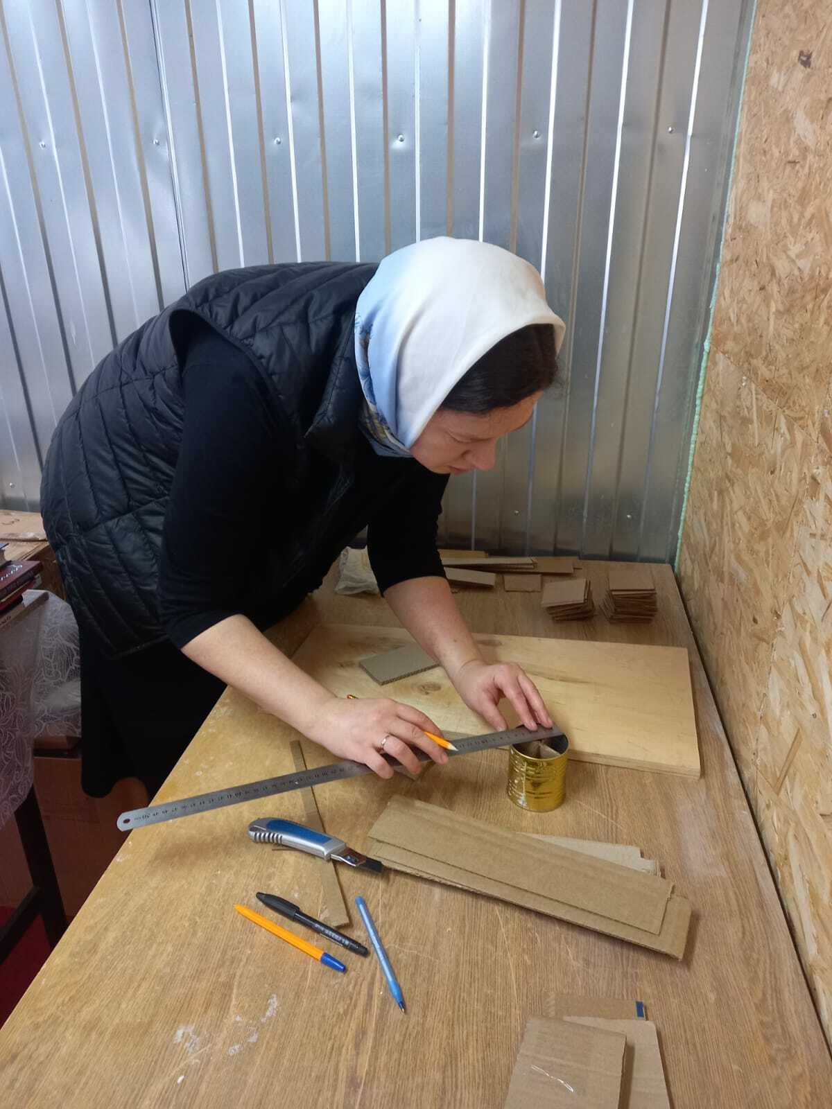 Силами прихожан нашего храма из подручных средств: жестяных банок, гофрокартона и минерального воска были изготовлены блиндажные свечи. Блиндажная свеча может гореть до 8 часов, она не только освещает, но и согревает, помогает разогреть и приготовить пищу в полевых условиях. 17 февраля и.о. настоятеля храма игумен АЛИПИЙ передал посылку со свечами и продуктами для бойцов и благословил на поездку в зону СВО р.б. Сергия.