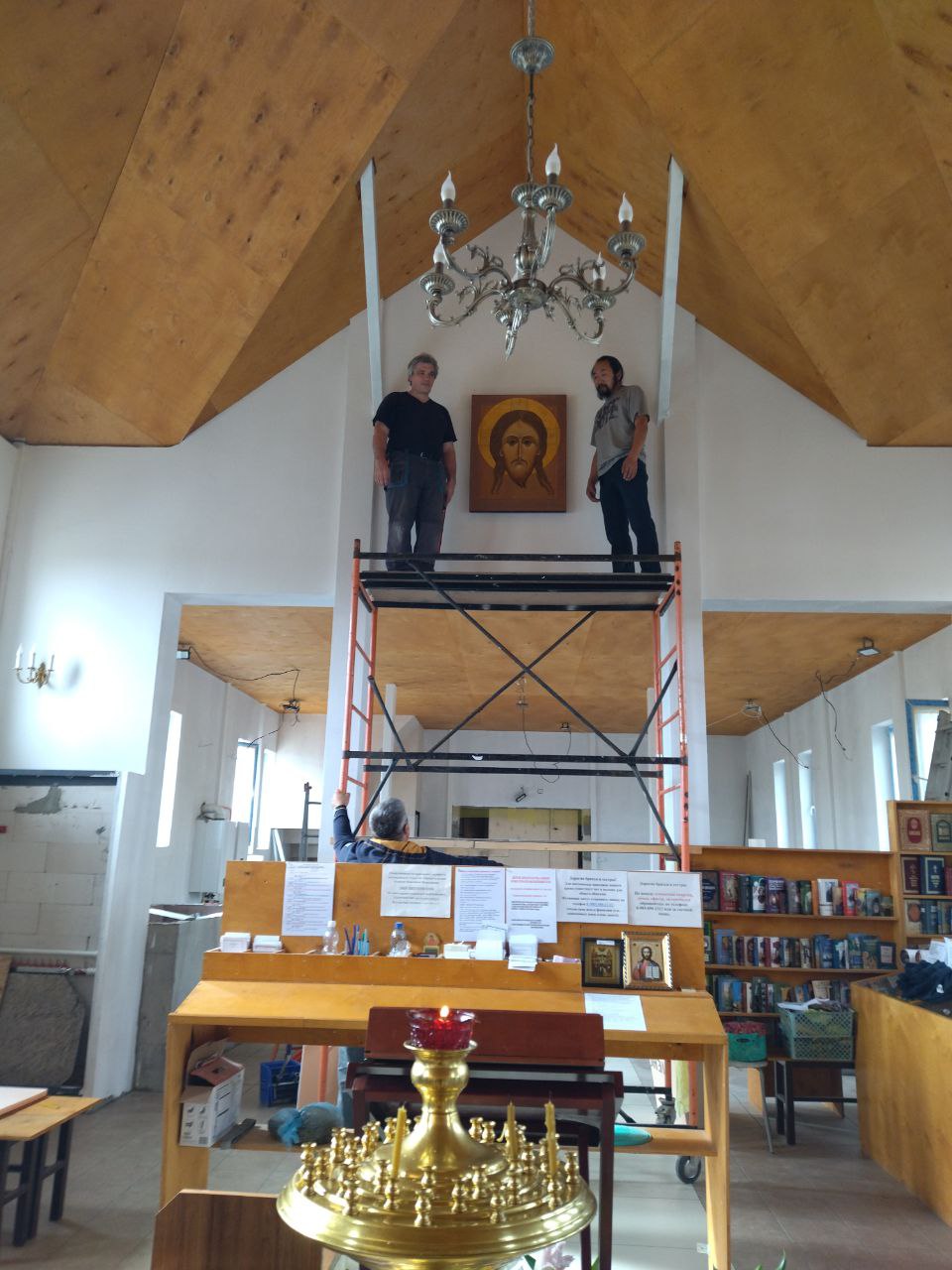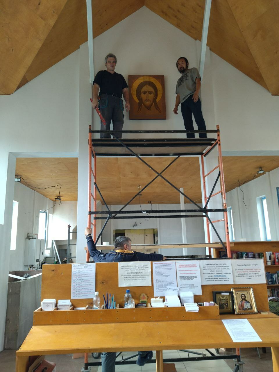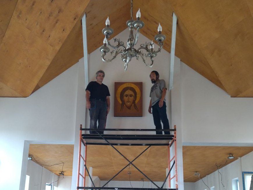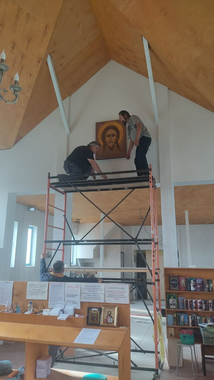 в день Рождества Пресвятой Богородицы, под внутренней аркой нашего храма прп. Александра Свирского, мы повесили новую икону Нерукотворного Спаса, написанную нашим иконописцем Юлей Ариевич. Ей помогали сотрудницы нашего храма, для которых это было настоящее событие!